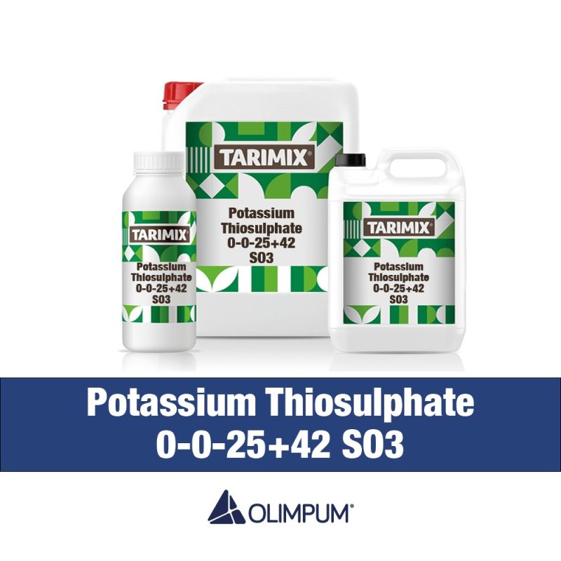 Potassium Thiosulphate is a chlorine-free 100% water-soluble liquid fertilizer; depending on the plant’s vegetative state and soil characteristics of the culture, per irrigation;